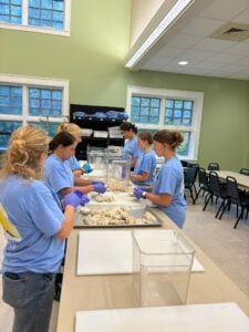 After weeks of being trained, we were off to Black Mountain, North Carolina for a week of domestic ministry before leaving the place we all called home (except for Sion-ed who is from Canada). There, our squad worked with Adventures Relief on restoring homes after Hurricane Helene left its destruction. My team, Salt Shakers, specifically worked with Mercy Chefs, a non-profit that gives food to those in need after natural disasters. We assisted in a lot of meal prepping, which included: shredding chicken, folding tortillas, mixing together deserts, and cutting up plenty of vegetables. Fun fact, if you cut enough onions, your eyes grow numb to the pain. We were able to help in the thousands of servings that they make per day to feed those in need. We loved this ministry and all of the laugher that came with serving together as a team for the first time.